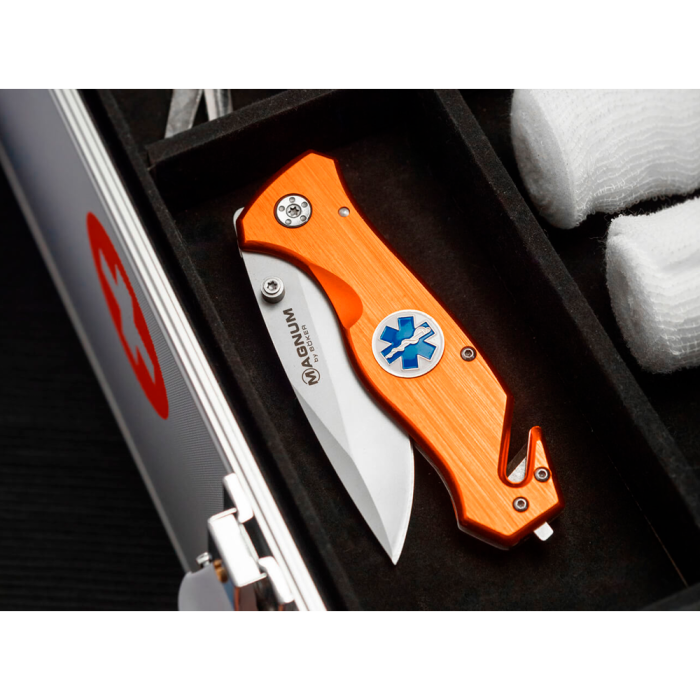 A Böker Magnum Medic é uma faca de resgate dedicada aos paramédicos.