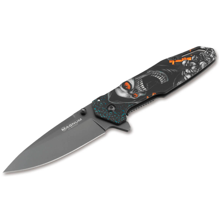 A Böker Magnum Screaming Skull é uma faca de bolso com um conforto surpreendente devido ao contorno nas bordas do punho, proporcionando profundidade tri-dimensional à arte da faca.