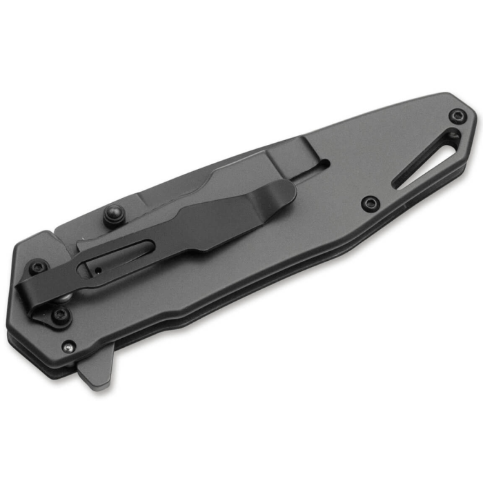 A Böker Magnum Black Spear é uma faca táctica, no punho é anatómica aos dedos tornando-a bastante ergonómica, a lâmina é serrada para cortar mais efectivamente.