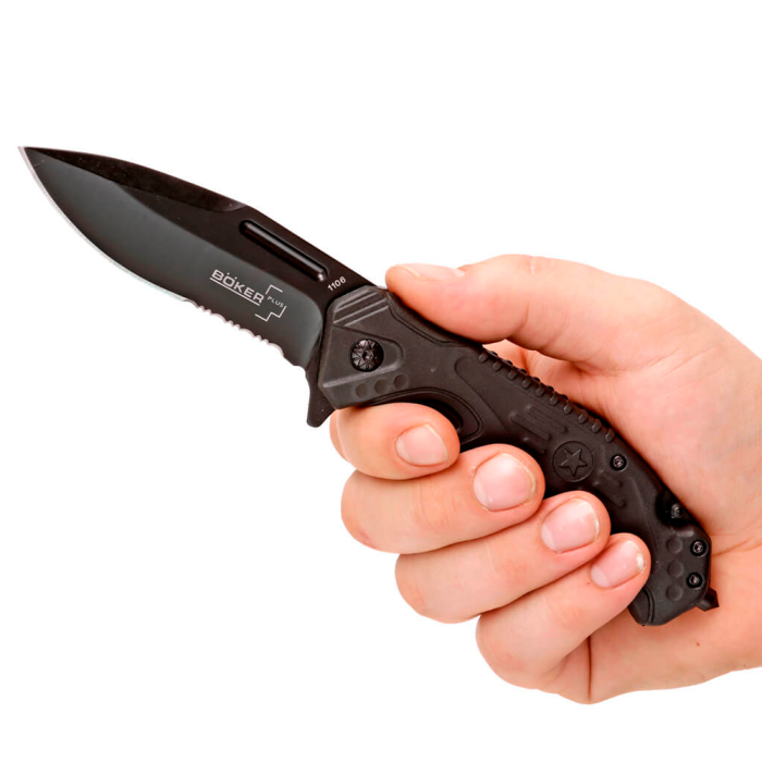 A Böker Plus Specialist Pro é uma ferramenta multi-função práctica, vem equipada com uma lâmina, uma serra para madeiras, abre-latas, abre-caricas, alicate para cortar cabos, furador de costura, chave de parafusos da Philips, chave de fenda e uma lima de metais. Com a compra vem acompanhado uma bolsa de nylon.