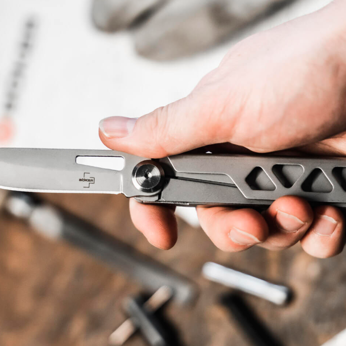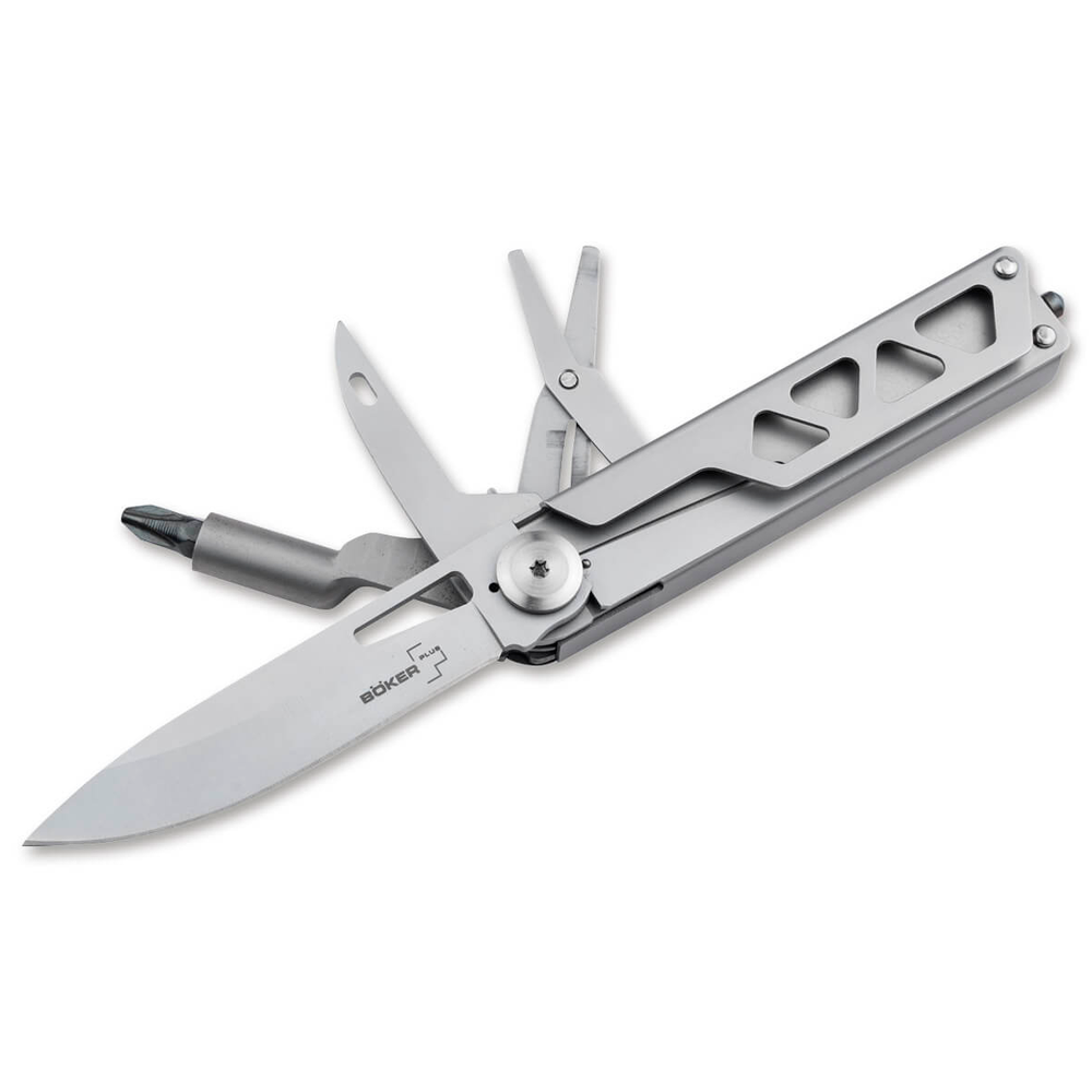 A Böker Plus Specialist Pro é uma ferramenta multi-função práctica, vem equipada com uma lâmina, uma serra para madeiras, abre-latas, abre-caricas, alicate para cortar cabos, furador de costura, chave de parafusos da Philips, chave de fenda e uma lima de metais. Com a compra vem acompanhado uma bolsa de nylon.